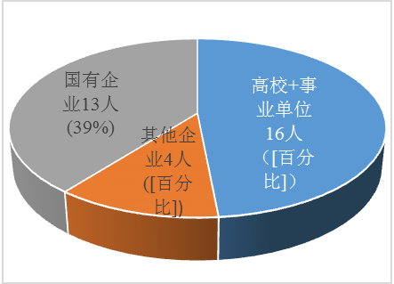 2022届硕士研究生就业率为93.94%。其中考取博士生5人,在高校及事业单位就业11人(表4),央企和国有企业就业4人,其他单位就业13人(图2)。