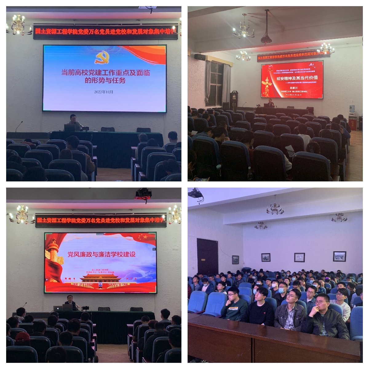 党委领导分别从《当前高校党建工作重点及面临的形势与任务》《延安精神及其当代价值 》《新时期安全生产与应急管理》《党风廉政与廉洁学校建设》等十余个专题进行授课,为全院800余名师生党员和9名发展对象提供了高质量的培训。