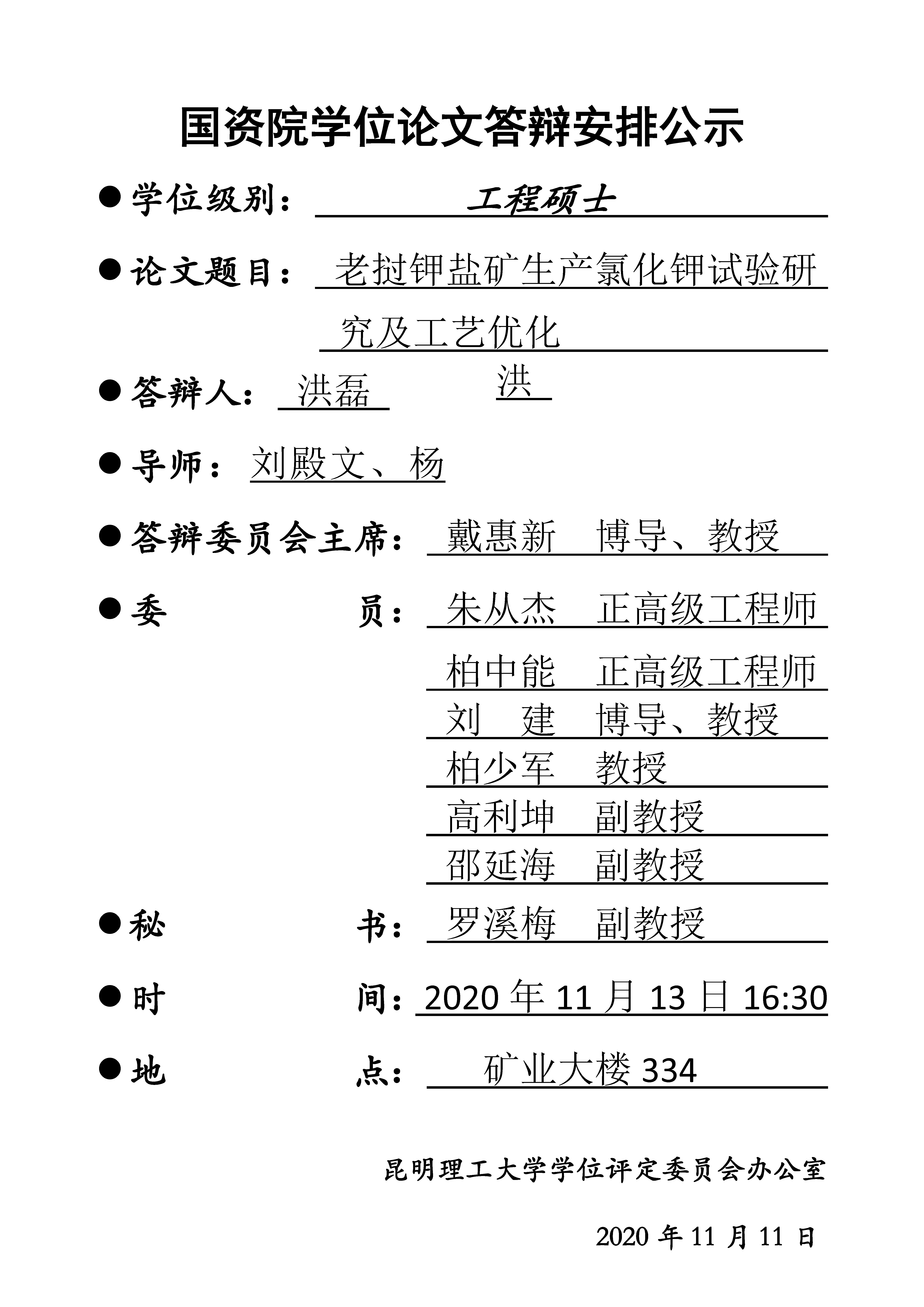 洪磊学位论文答辩安排公示