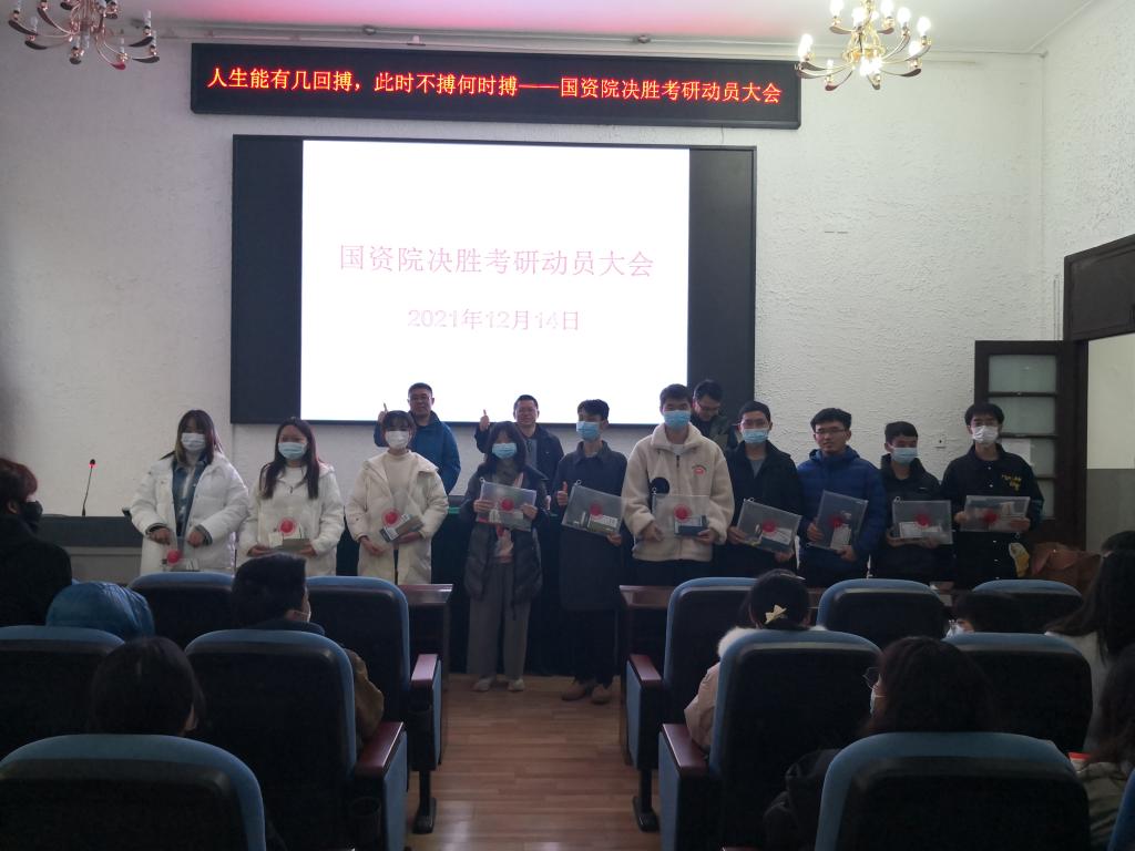 于2021年12月14日上午11:00在国资楼第一会议室召开了“人生能有几回搏,此时不搏何时搏——188金宝博决胜考研动员大会”。院党委书记朱大明、院党委副书记李雨健、副院长李克钢、2018级辅导员薛丽华以及2018级209名考研同学参加动员会。