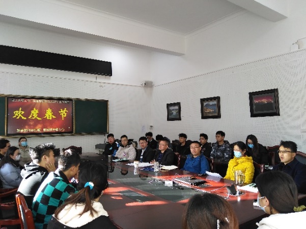第二会议室里,朱大明书记、李雨健副书记、李克钢副院长、张环正处级组织员、王雷副院长、辅导员代表陈晓鸣、董有浦、钟军伟老师与28位留校研究生(含2位留学生)欢聚一堂,一起迎接虎年的到来!