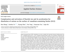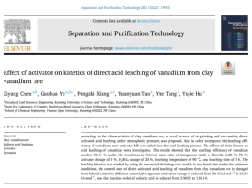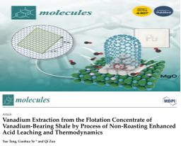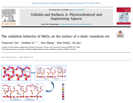近来,昆明理工大学国土资源工程学院叶国华研究团队在活化酸浸提钒研究方面取得重要进展,相关工作以“Complexation and activation of fluoride ion and its acceleration for dissolution of cations on the surface of vanadium-containing biotite (002)”、“Effect of activator on kinetics of direct acid leaching of vanadium from clay vanadium ore”、“Vanadium Extraction from the Flotation Concentrate of Vanadium-Bearing Shale by Process of Non-Roasting Enhanced Acid Leaching and Thermodynamics”、“The oxidation behavior of MnO2 on the surface of a shale vanadium ore”,分别在Applied Surface Science、Separation and Purification Technology、Molecules和Colloids and Surfaces A: Physicochemical and Engineering Aspects上发表。