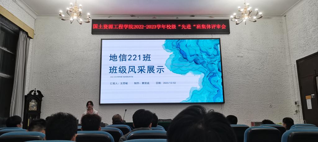 评审结果:矿加201以89.35分荣登榜首,土管221以88.26分获得第二名,地信221以88.09分获得第三名。最终矿加201、土管221、地信221、测绘221及测绘222作为2022-2023学年“校级先进班集体”的候选班级推荐到学校参加评选。