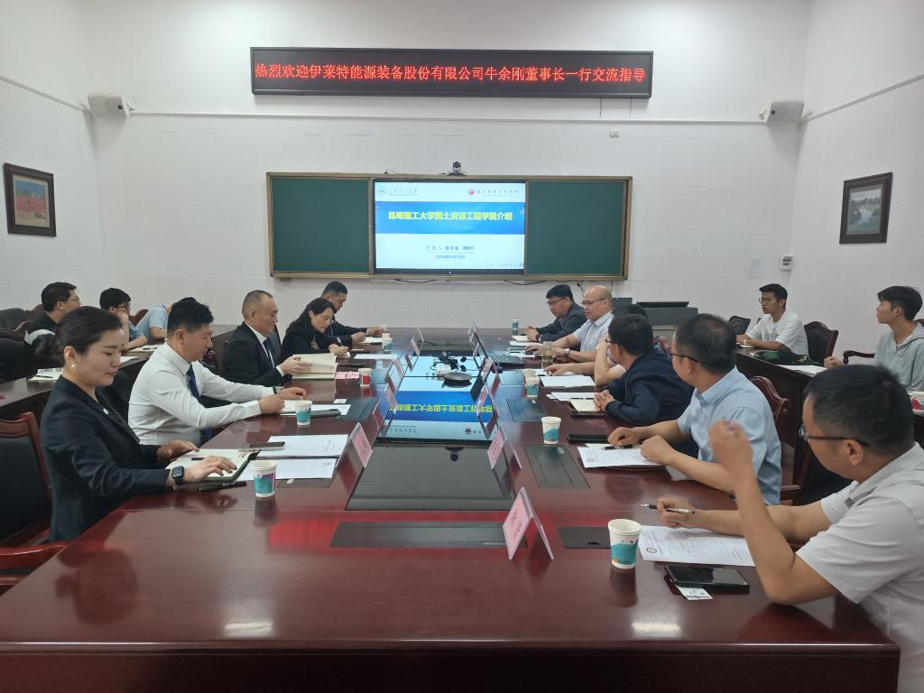 党委书记朱大明、副书记李雨健、副院长蓝卓越、副院长肖庆飞、矿物加工工程系主任邵延海、系副主任谢贤、系副主任周强,以及云南省选择性磨矿提质降耗科技创新团队青年教师、博士及硕士研究生与牛董事长一行在国资188金宝博
