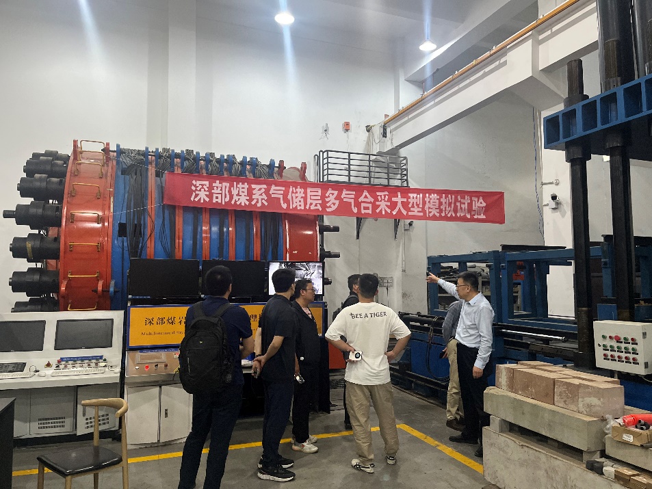随后,在煤矿灾害动力学与控制国家重点实验室王开成副主任的陪同下,集体参观了煤矿灾害动力学与控制国家重点实验室,包括MTS、GCTS、GDS等岩石力学试验系统和大型物理模拟力学加载试验系统等。