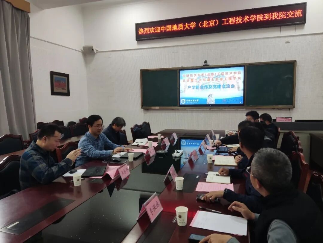 为充分加强188金宝博 之间的产学研合作,发挥党建引领和党建共建促进作用,10月22日上午,中国地质大学(北京)工程技术188金宝博 与188金宝博官网 开展产学研合作及党建工作交流座谈会。188金宝博 党委副书记李雨健、地大(北京)工程技术188金宝博 工程地质系支部书记陈剑、地质工程系支部书记王志乔、地下工程系支部书记刘红岩、工程地质系副主任臧明东、188金宝博 地科系系主任杨光树、地科系第二党支部书记李保珠、“深地资源开发与灾害防控科技创新团队”党支部支委代风、地科系系副主任管申进、徐晓飞和童大贵参加了座谈。 188金宝博 党委副书记李雨健首先对工程技术188金宝博 一直以来给予188金宝博 人才培养、科研合作等方面的支持表示感谢,然后介绍了188金宝博 基本情况及党建工作,也期待通过此次的交流座谈活动实现双方“业务共融、携手共进”,共同推动党建工作的不断创新与提升。工程技术188金宝博 工程地质系支部书记陈剑介绍了188金宝博 基本情况及党建工作,分享了科研、人才培养和党建方面的举措,期待未来能够与188金宝博 开展更多实质性和全方位的合作交流,共同推进产学研工作的互学互鉴、党建工作的互融互促。 会上,“深地资源开发与灾害防控科技创新团队”党支部支委代风详细介绍了支部的基本情况,分享了近年来开展的特色党建活动,期待188金宝博 之间“强国行”支部之间更多的合作和交流。 会后,工程技术188金宝博 一行参观了188金宝博 地学博物馆、“深地资源开发与灾害防控科技创新团队”党支部党建工作室。