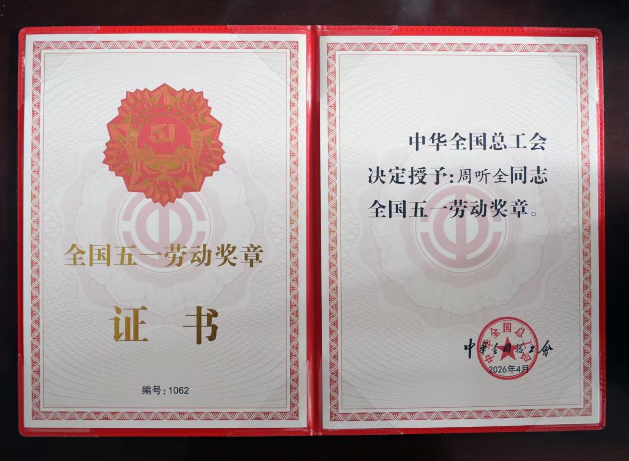 地球科学系 2007 级资源勘查工程专业优秀校友、云南黄金矿业集团股份有限公司周听全同志,光荣获评全国五一劳动奖章。