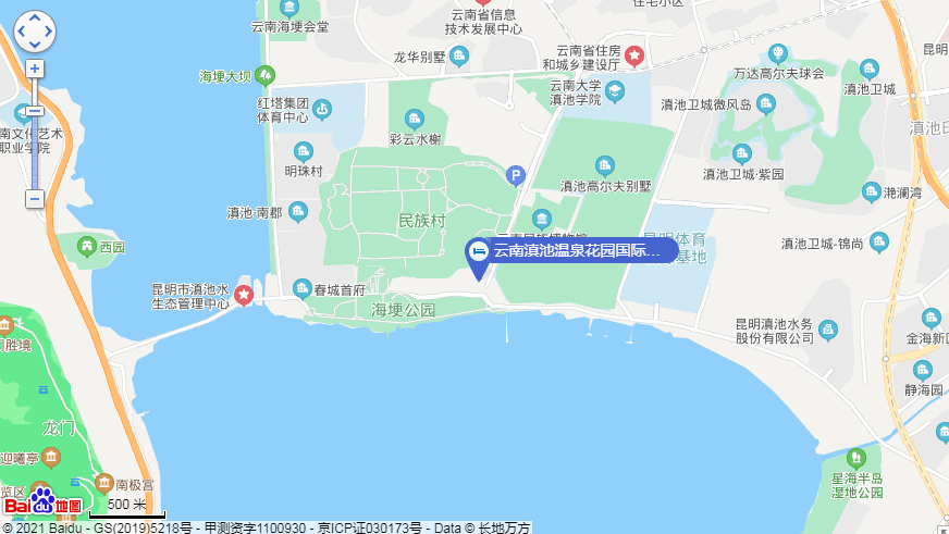 云南滇池温泉花园国际大酒店位于昆明市西山区滇池路1316号,坐拥滇池,邻伴西山,毗邻云南民族村。酒店电话:0871-63661743