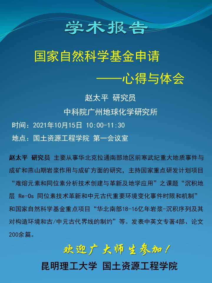 赵太平研究员关于国家自然科学基金申请心得与体会学术报告通知