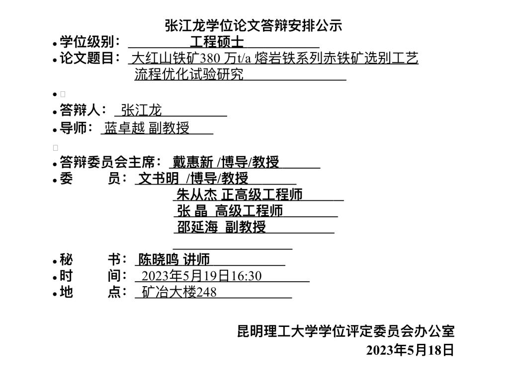 矿加系张江龙学位论文答辩安排公示
